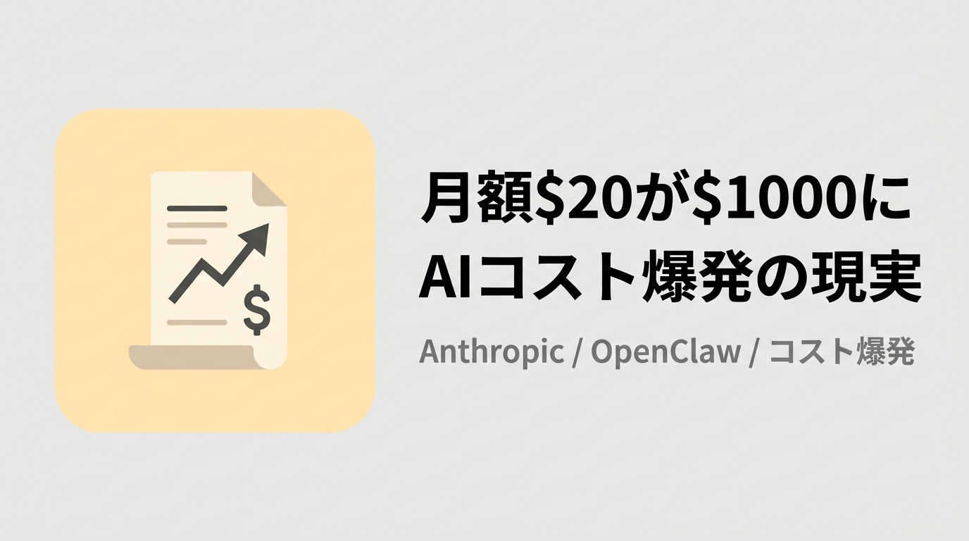 月額$20が$1000になる——AnthropicのOpenClaw遮断が示す「AIエージェントコスト爆発」の現実