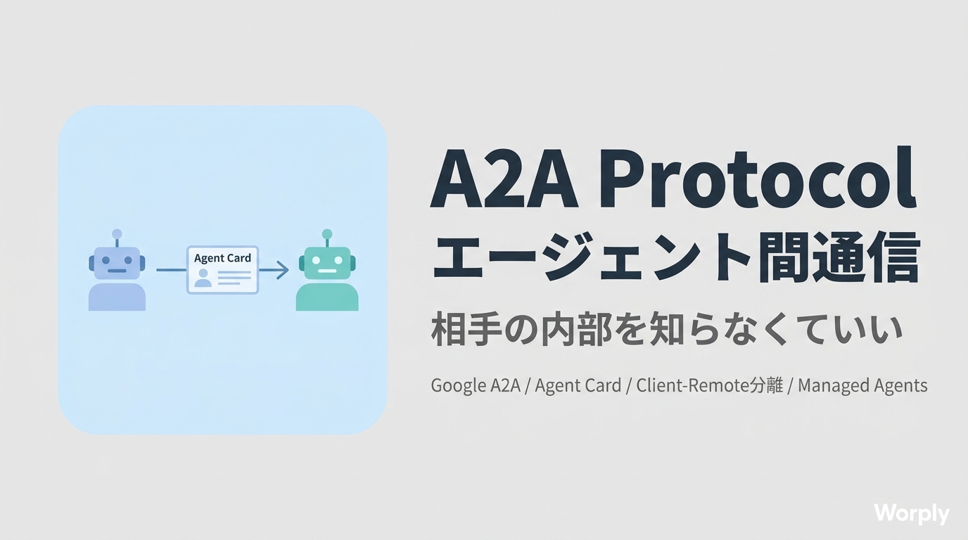 2025年4月にGoogleが発表したA2Aは、AIエージェント同士の発見・通信・タスク委譲を標準化するオープンプロトコルだ。技術的な土台はHTTP、SSE、JSON-RPC 2.0という既存の標準仕様で、わざわざ新しいトランスポート層を発明していない点が面白い。