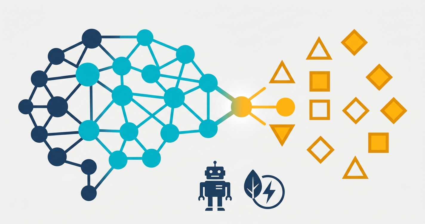 結果として、必要な計算量が劇的に減る。トレーニング時のデータ量も小さくて済む。記号ロジックの部分は学習ではなく定義するものなので、そもそもデータを消費しない。これがエネルギー削減の仕組みだ。